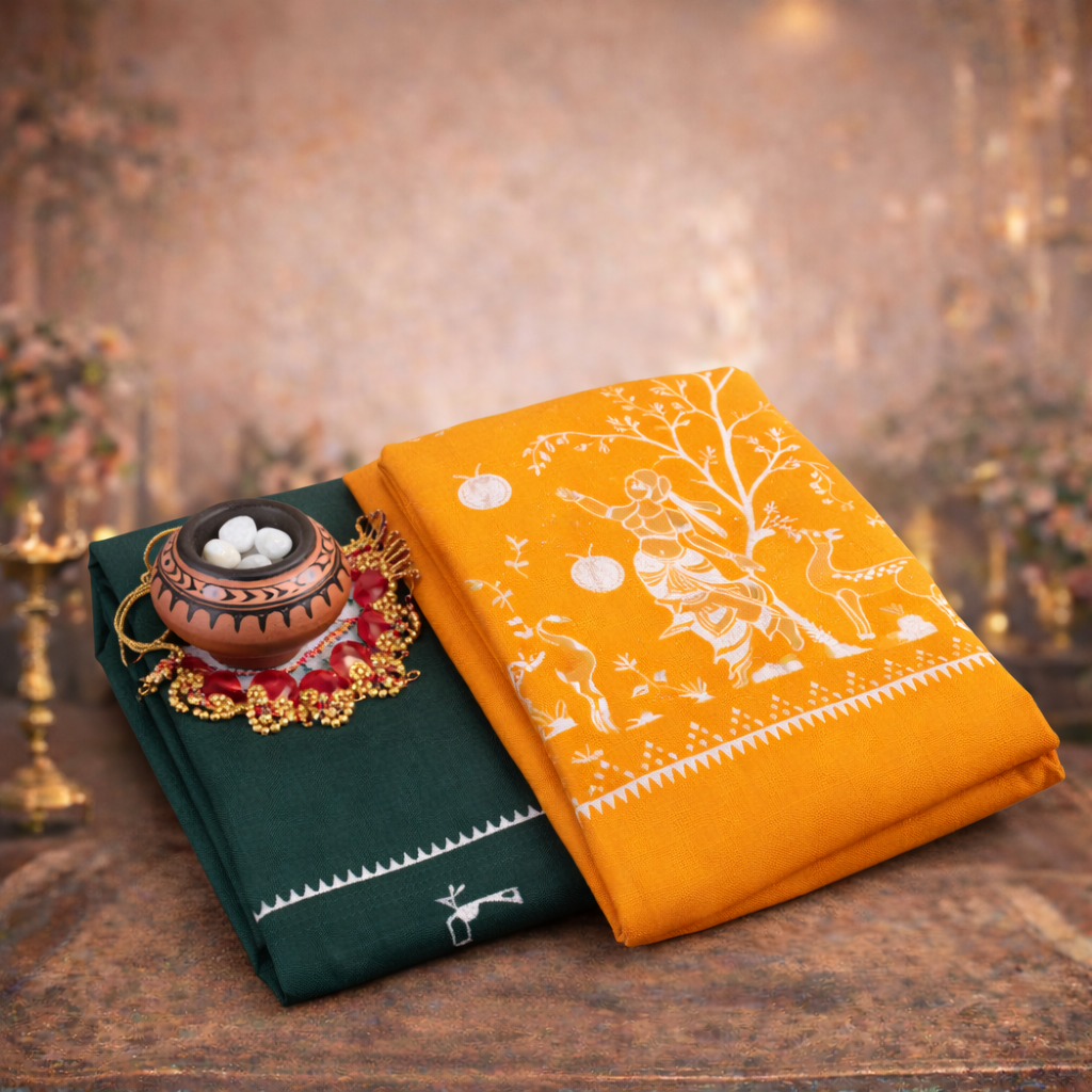 Bomkai Handwoven Traditional Dress with bottom and dupatta.